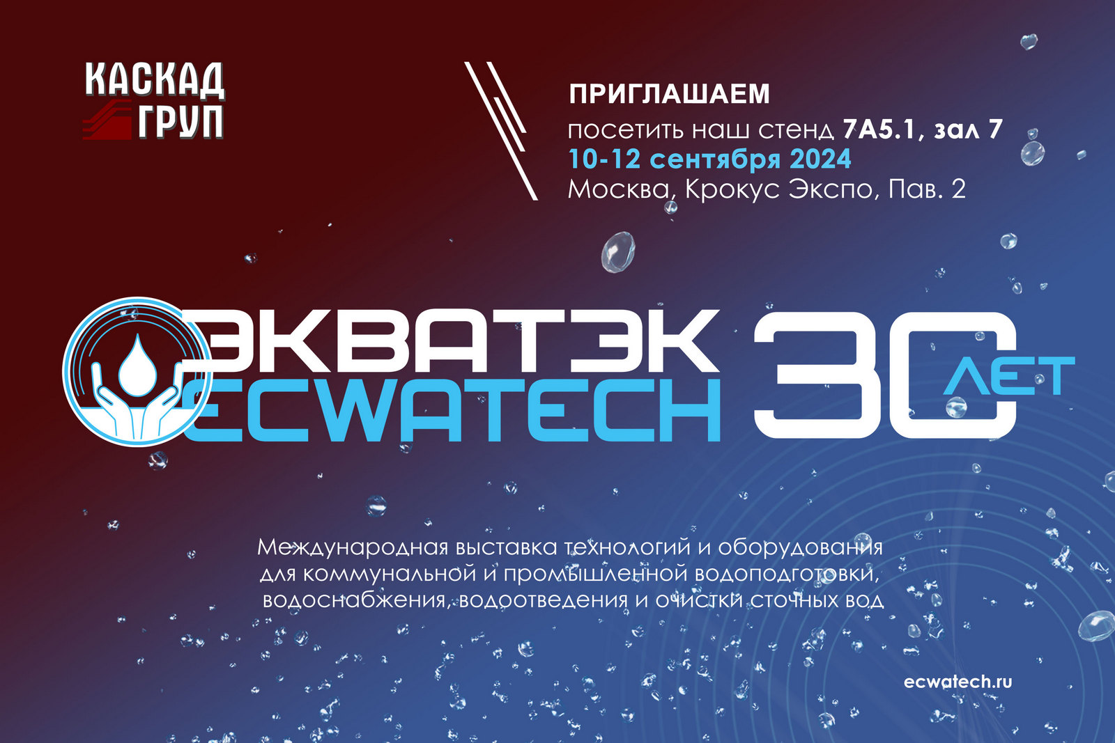 В период 10-12 сентября специалисты НПО «Каскад-ГРУП» примут участие в международной выставке технологий и оборудования для коммунальной и промышленной водоподготовки, водоснабжения, водоотведения и очистки сточных вод «ЭКВАТЭК-2024».
