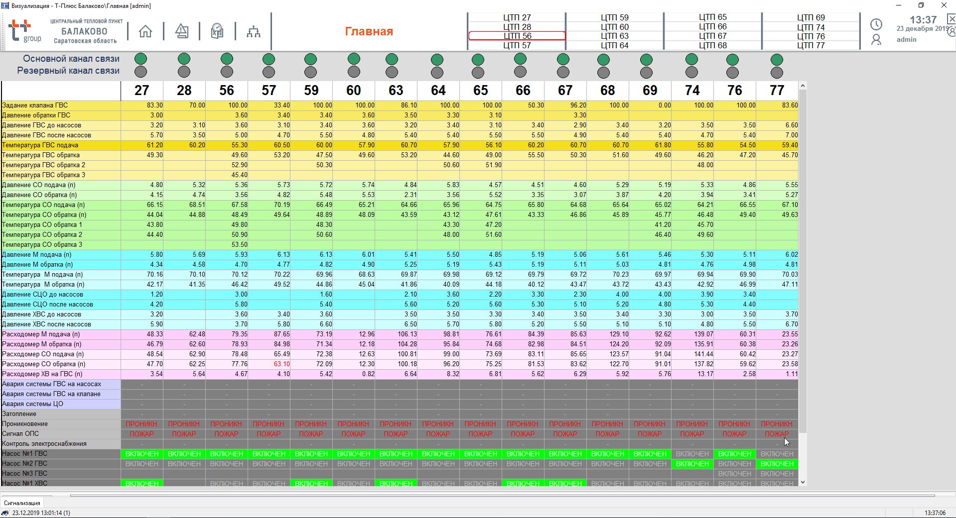 - контроль текущего состояния насосных агрегатов (работа/авария/останов).