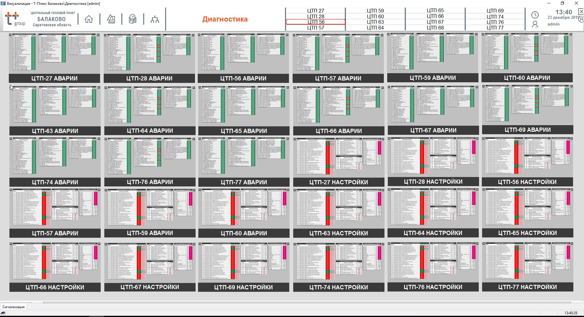 - перевод ЦТП в безопасный режим при срабатывании предельных датчиков (температуры, давления и др. — по реализованной схеме);