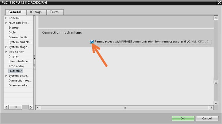 По этой причине связи SCADы с контроллером при стандартной заливке программы и конфигурации у вас НЕ будет. Для того чтобы SCADа «Каскад» при помощи драйвера S7.dll все-таки смогла пообщаться с запрограммированным вами контроллером, необходимо поставить галочку разрешения обмена PUT/GET-сообщениями с вашим контроллером.
